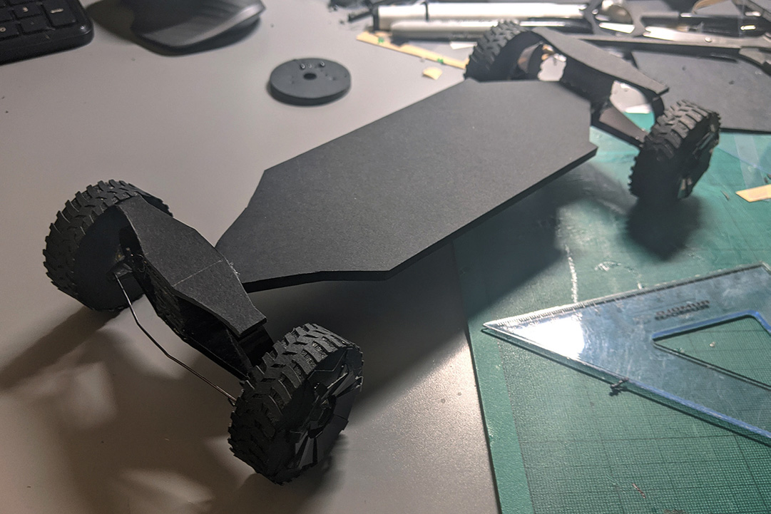 Makeshift paper and stationary suspension has been developed for realistic truck behaviour.